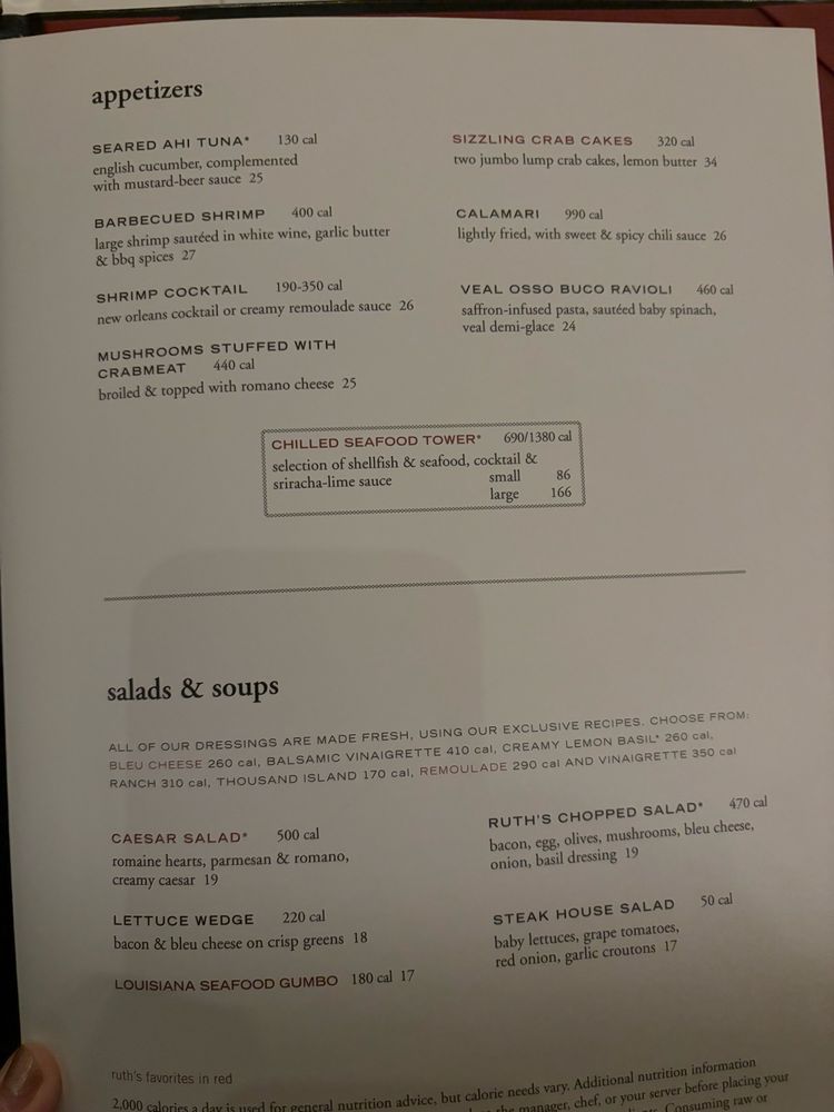 “ came here for the first time ever after having had many other steakhouses. the steaks are good, service is fantastic, and I love that the food is serving on HOT plates to keep food hot. my pet peeve is when they bring out all the food at once and the first dish that was cooked is cold from the wait, and Ruth's Chris has defeated that by serving everything on hot plates. our server Alan was so funny. he was attentive for the most part except for forgetting to open our wine bottle, but other than that we had a good time with him. I have to minus one star because it's so pricey. like, outrageous. sides are ala carte from the entrees and even though it's a shareable portion for a decently large group, it really adds up. it's hard to decline the sides though and honestly they weren't stunning so I don't see the cost justification. overall still had a great dinner experience and would recommend at least one visit in your lifetime. ”